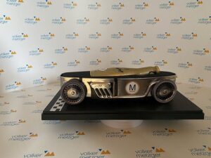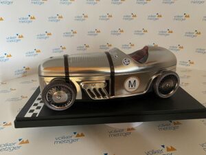 - Design: Eine speziell gestaltete Dose im Look eines Oldtimer-Silberpfeils.
